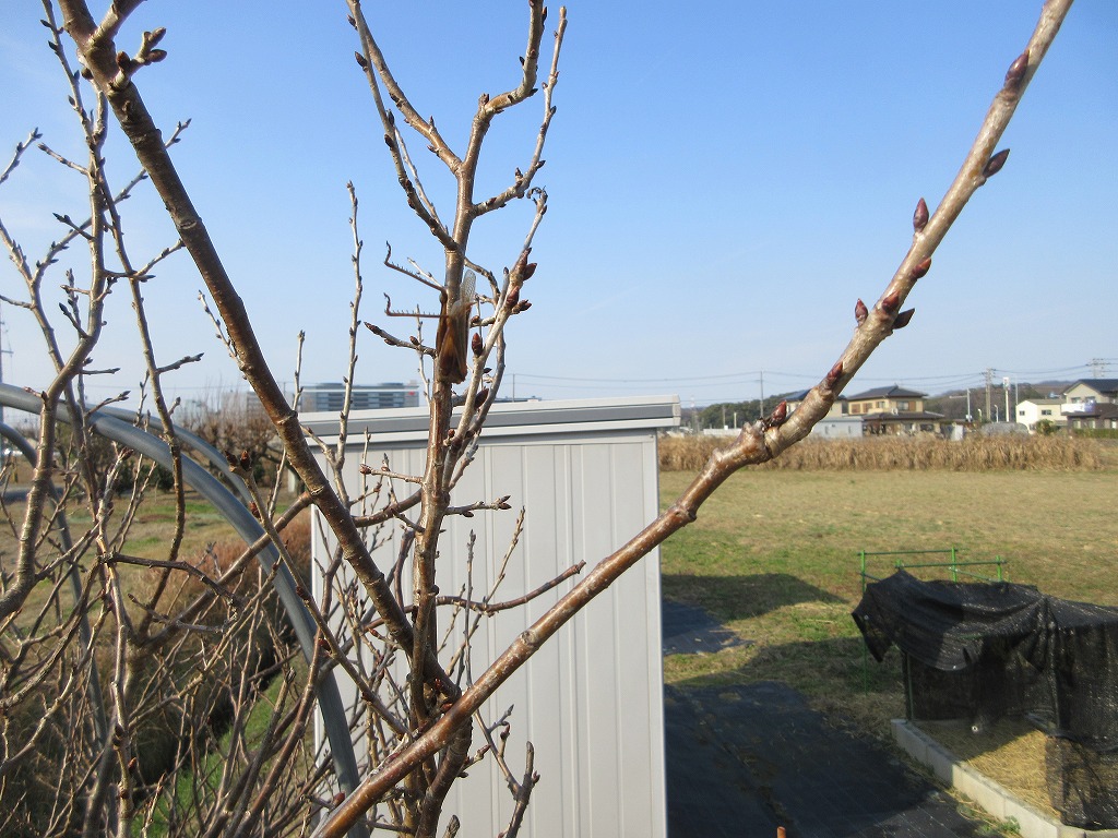 晴天。暖かい一日でした。 朝から床屋さんへ。その後所用を済ませて道場に寄り、菜園長ご所望の物置&水道のキー掛けを設置しました。 イチジクもさくらんぼの木も、葉はすっかり落ちてhshin同様丸坊主ですが(^^;)枝の先端や節にはもう新芽が 芽吹きはじめています。さくらんぼの木には加えて「モズのはやにえ」も刺さってます。 (詳細はギャラリーで) 明日はいよいよ大晦日ですね o(^o^)o | |