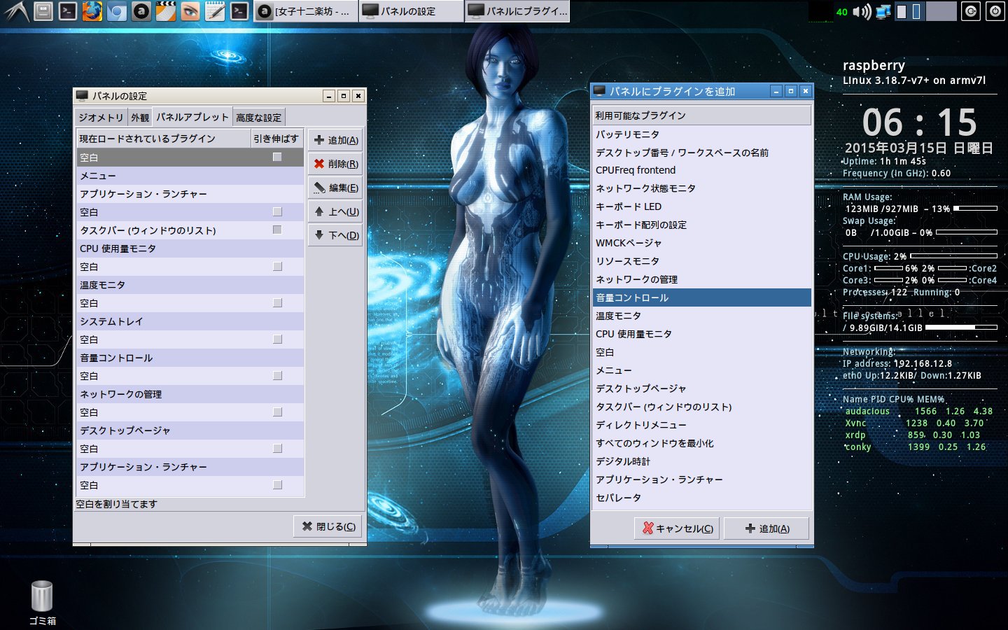 パネルアイテムの追加・削除/アプリケーション・ランチャーにアクセサリから追加する。