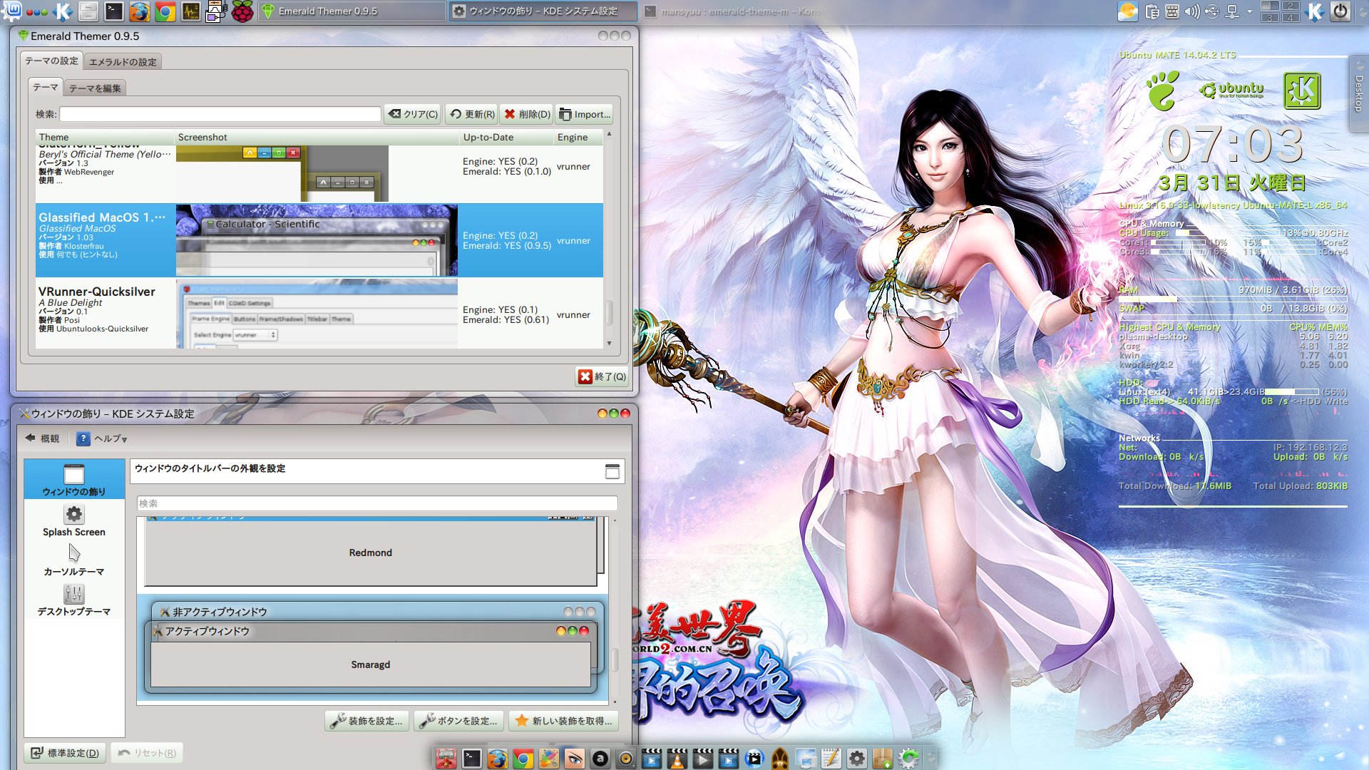 最後に KDE システム設定・ウィンドウ飾りから Smaragd を選択する。