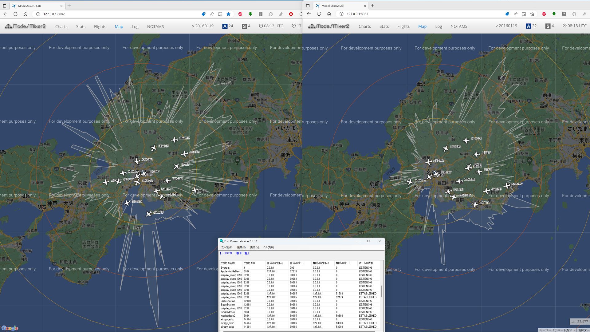 ADS-B 関連アプリは多くのポートを確保する。