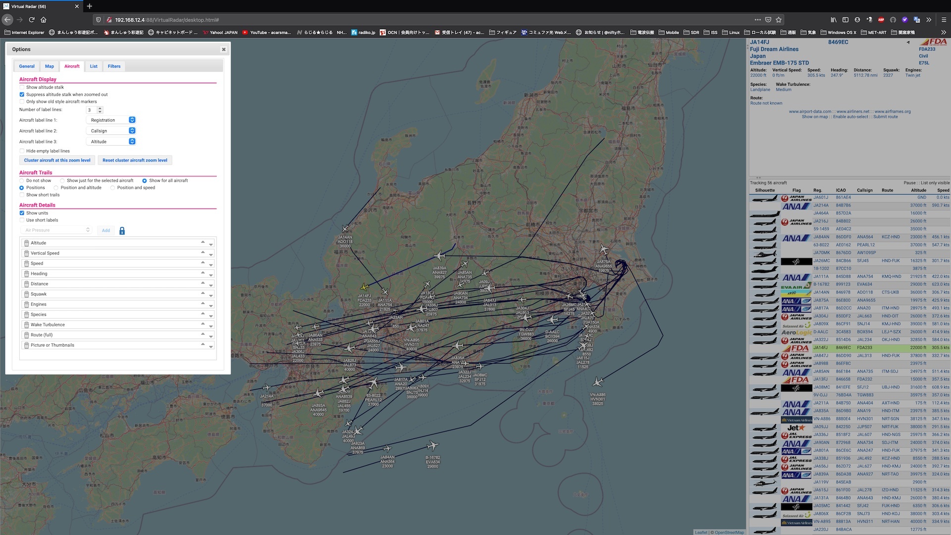 BaseStation MapModes にて得たデータを VirtualRadar に展開。