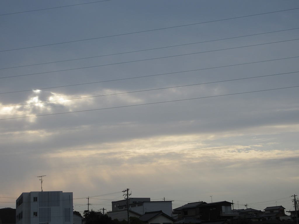 思いのほか暖かい朝。東南の方角に天使の階段が観られました。
