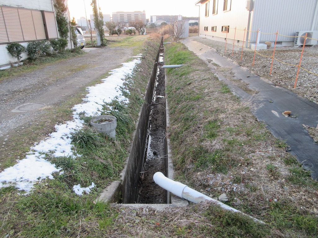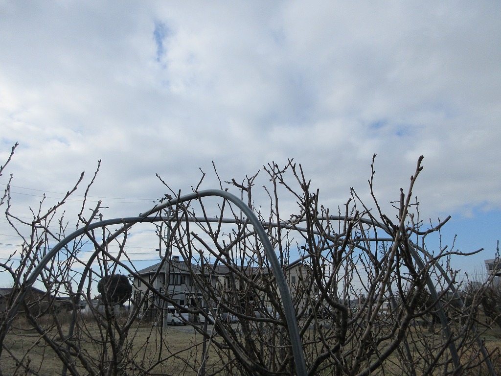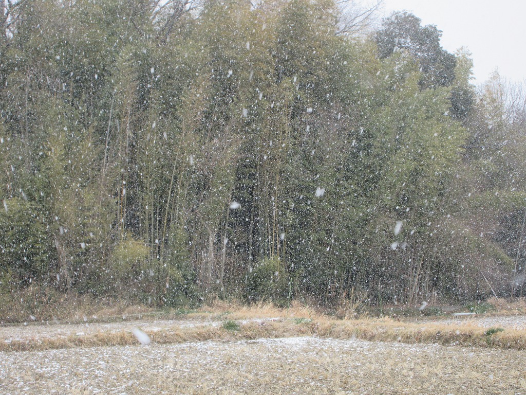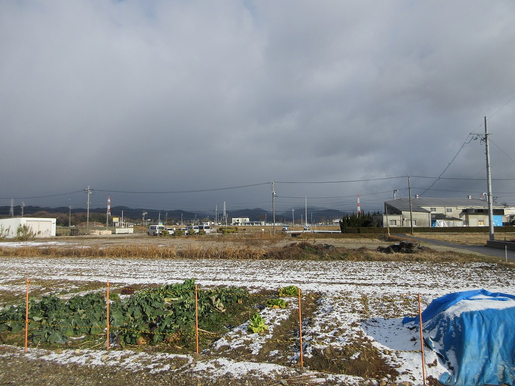 朝方に雪がちらつき、夕方でも残っていたあさひ菜園…