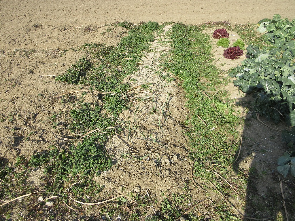 草に埋もれていたニンニクの畝もスッキリ。ターツァイを収穫しみなさんに配りました。