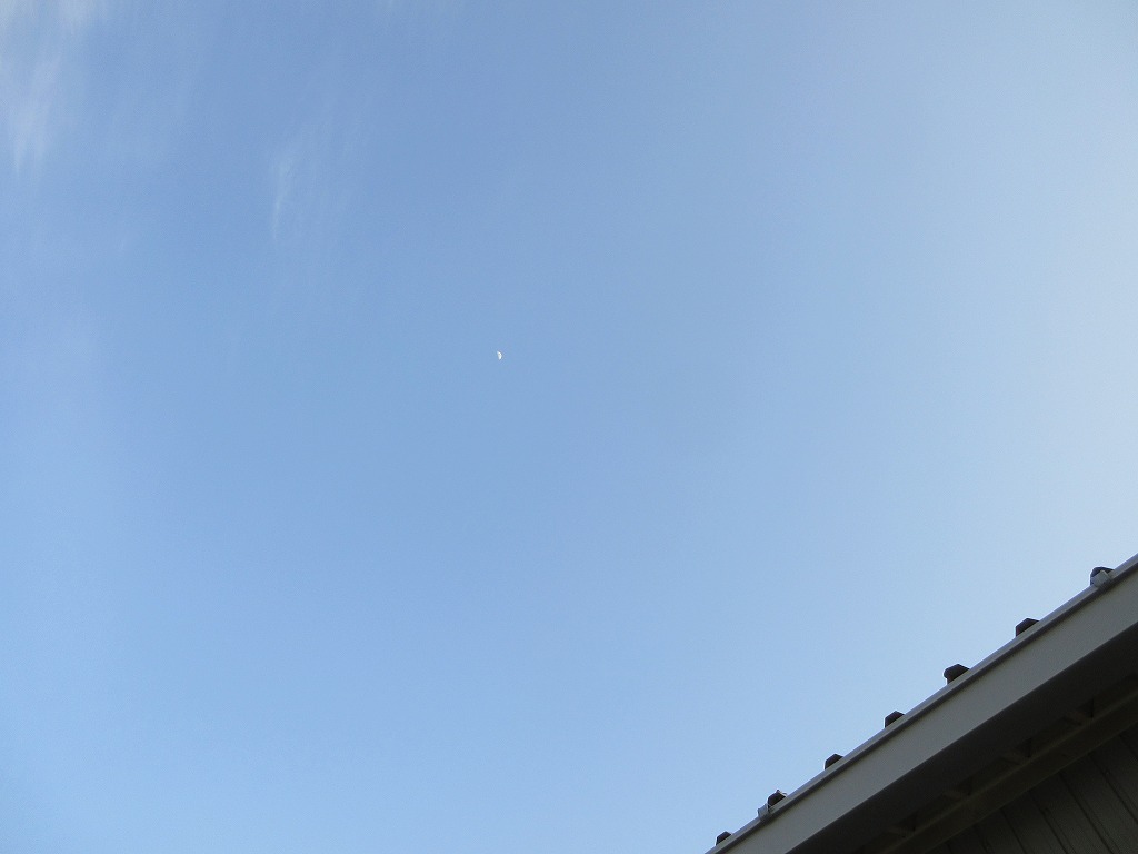 畑では、ブロッコリーがひとつ蕾をつけました。月は月齢7.3日。上弦の月です。