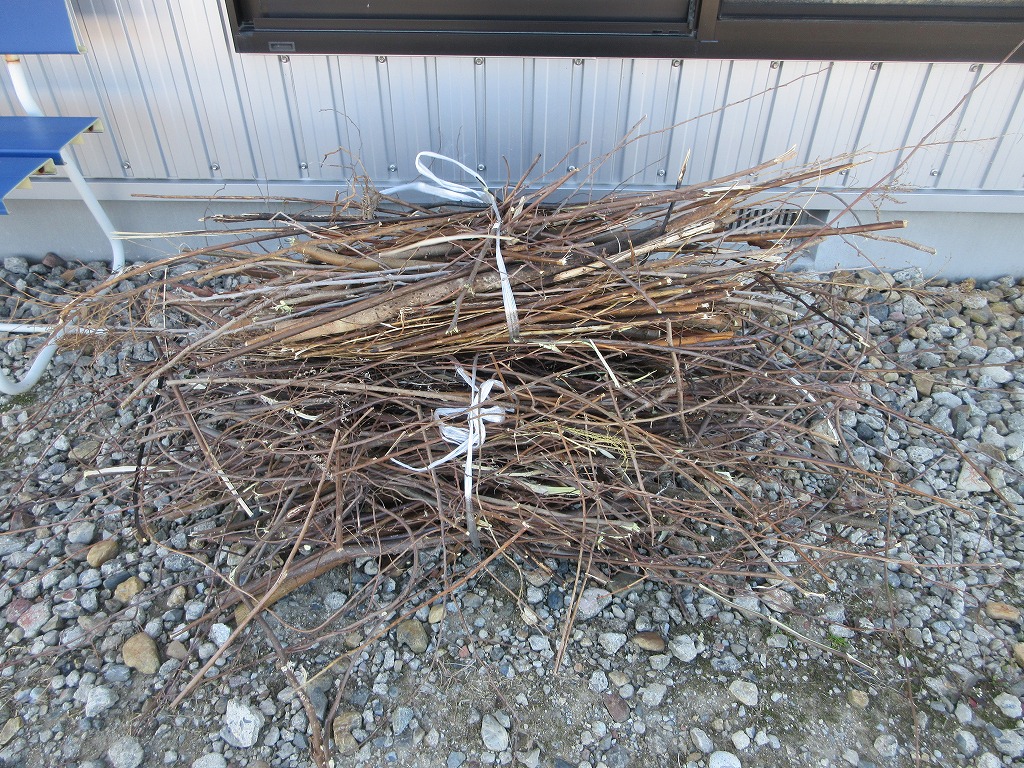 小枝をカットし、棒状に近い形にし3束にまとめて完了。