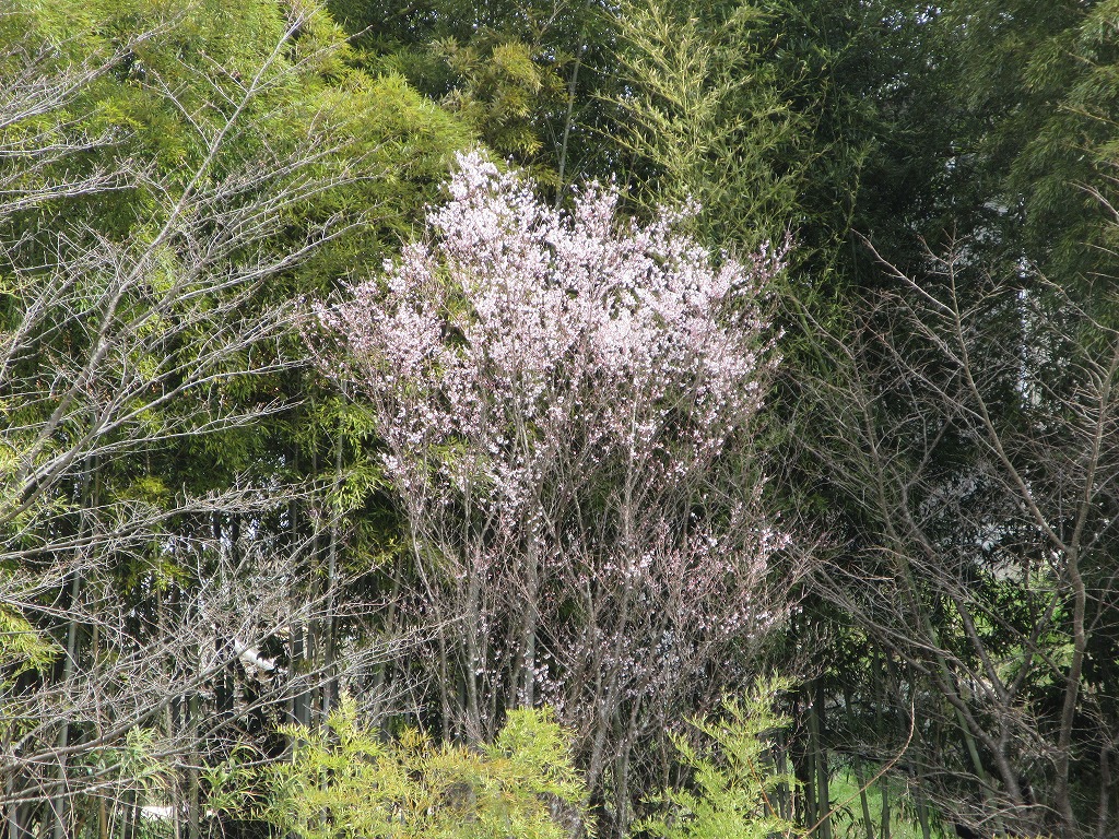 道場から観えるようにと、かつて義父が植えてくれた桜が開花しました。別の鉢のユリも芽吹きました。