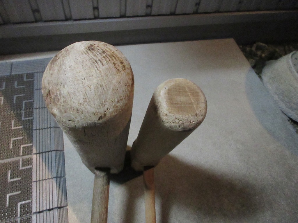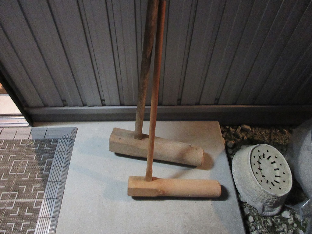 夕暮れ迫る寒空の中、週末の納会餅つき準備で杵の先にグラインダーを掛けました。
