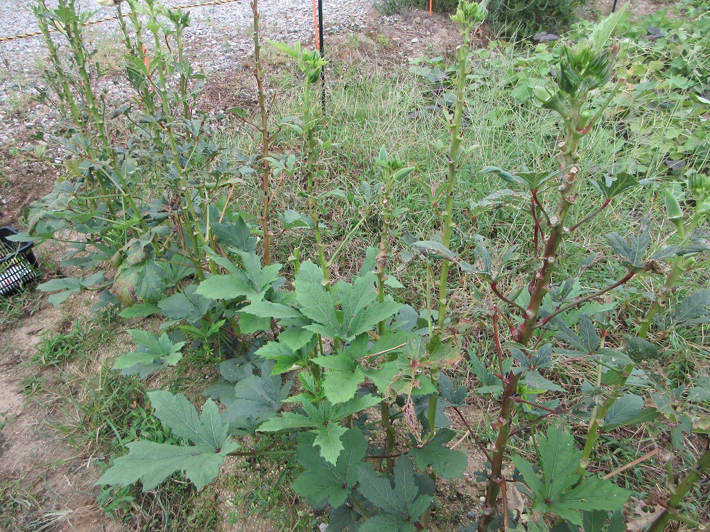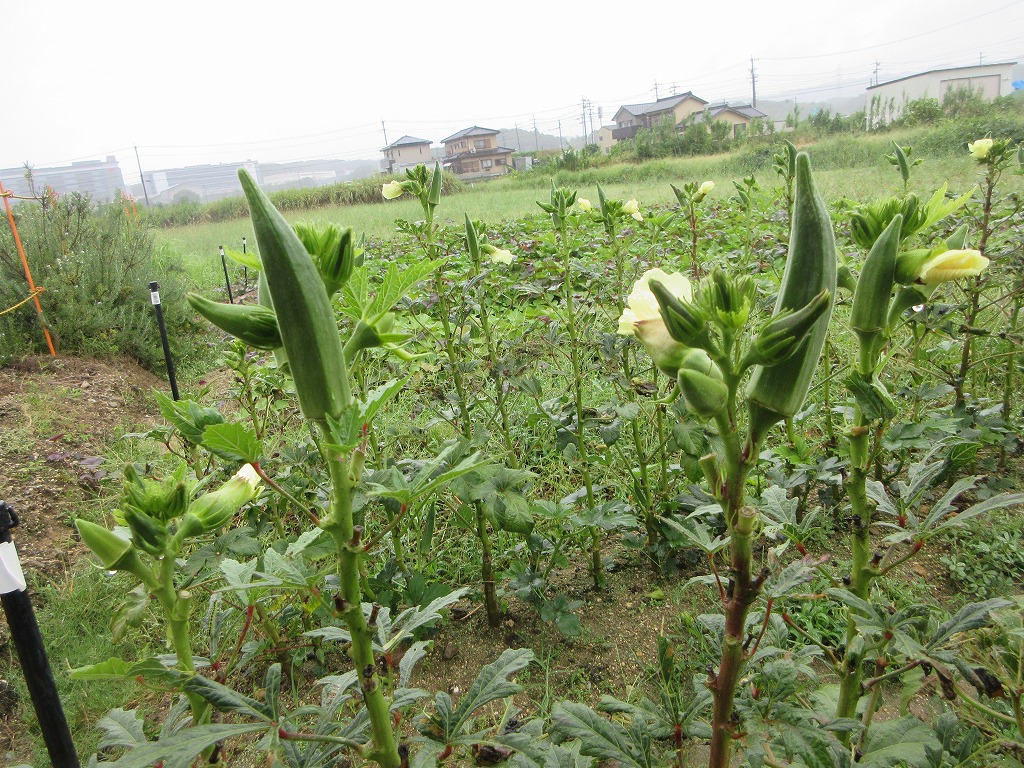 オクラを収穫する背中にジリジリと照り付ける陽射しが熱い(><)