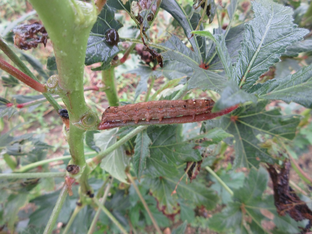 オクラはフタトガリコヤガが数匹とワタノメイガが1匹。そしてあらたにヨトウムシも(@_@;)