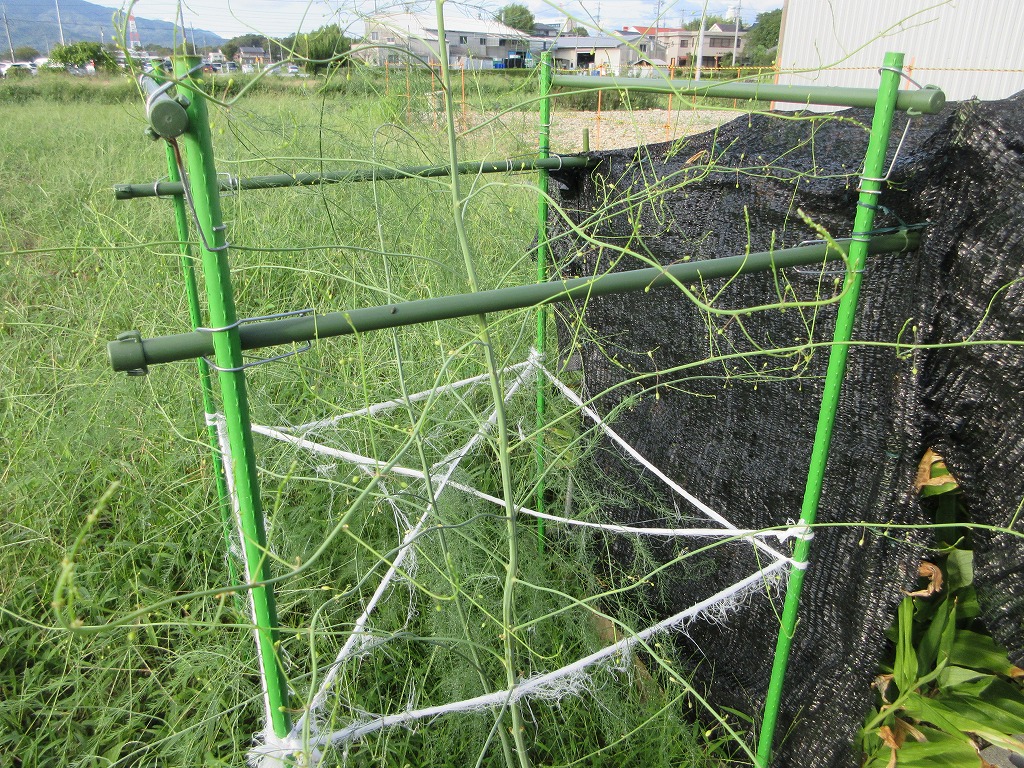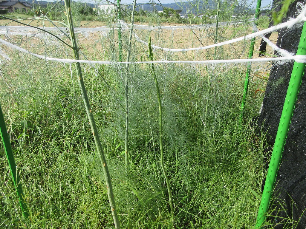 気温は30℃。でもグッと涼しくなった印象です。先日のアスパラがあっという間に伸びてきました。