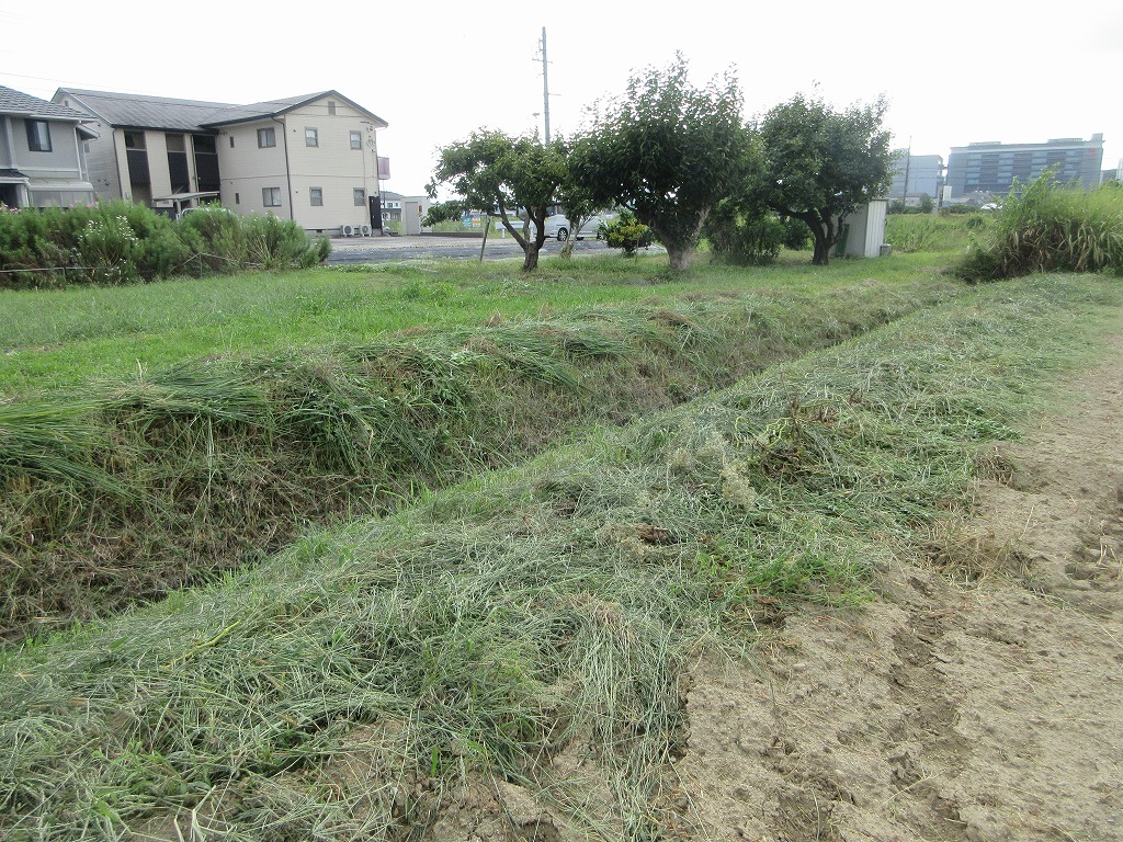 心地よい気温の中、昨日の続きで側溝の草を刈り払いしました。