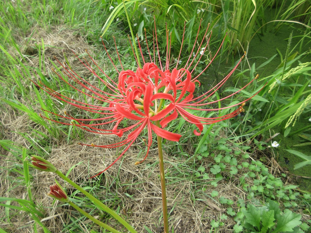 その後、サツマイモの蔓返しを…気がつけば、彼岸花が咲いています。