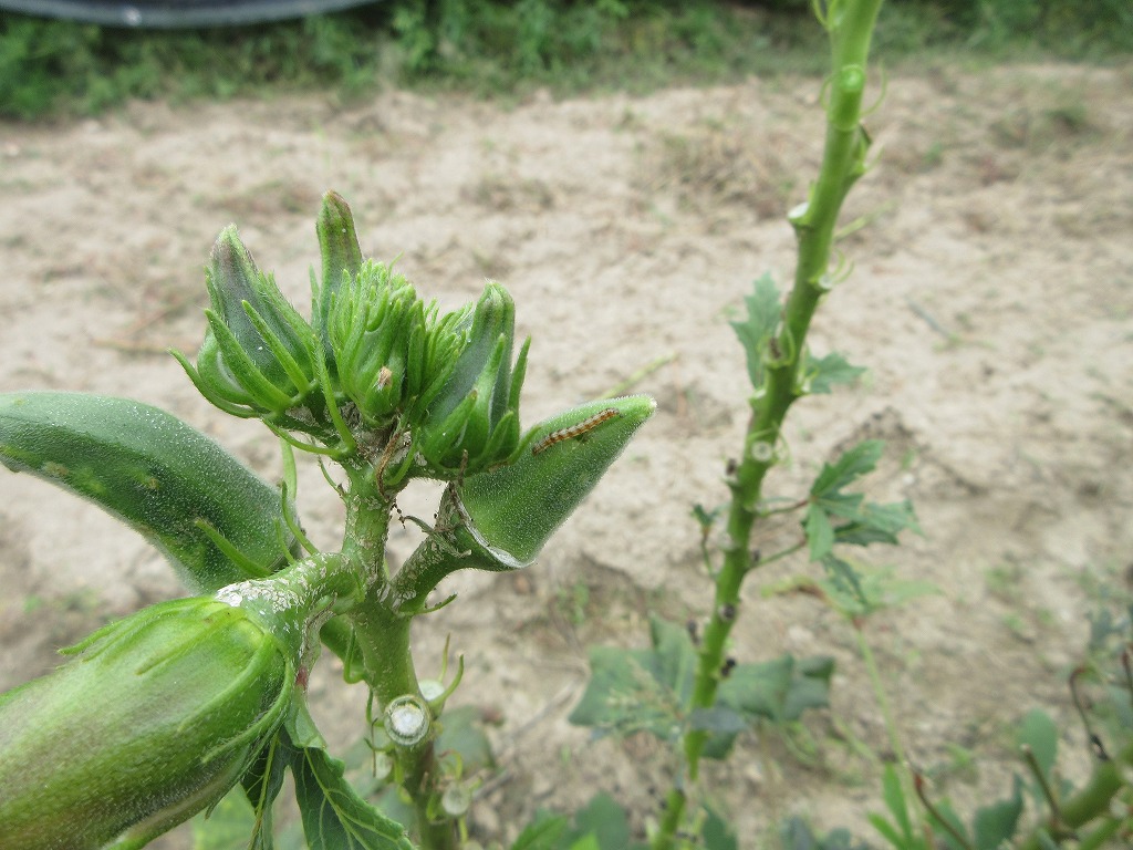オクラは葉だけでなく、実にも新たな虫がつき始めています。