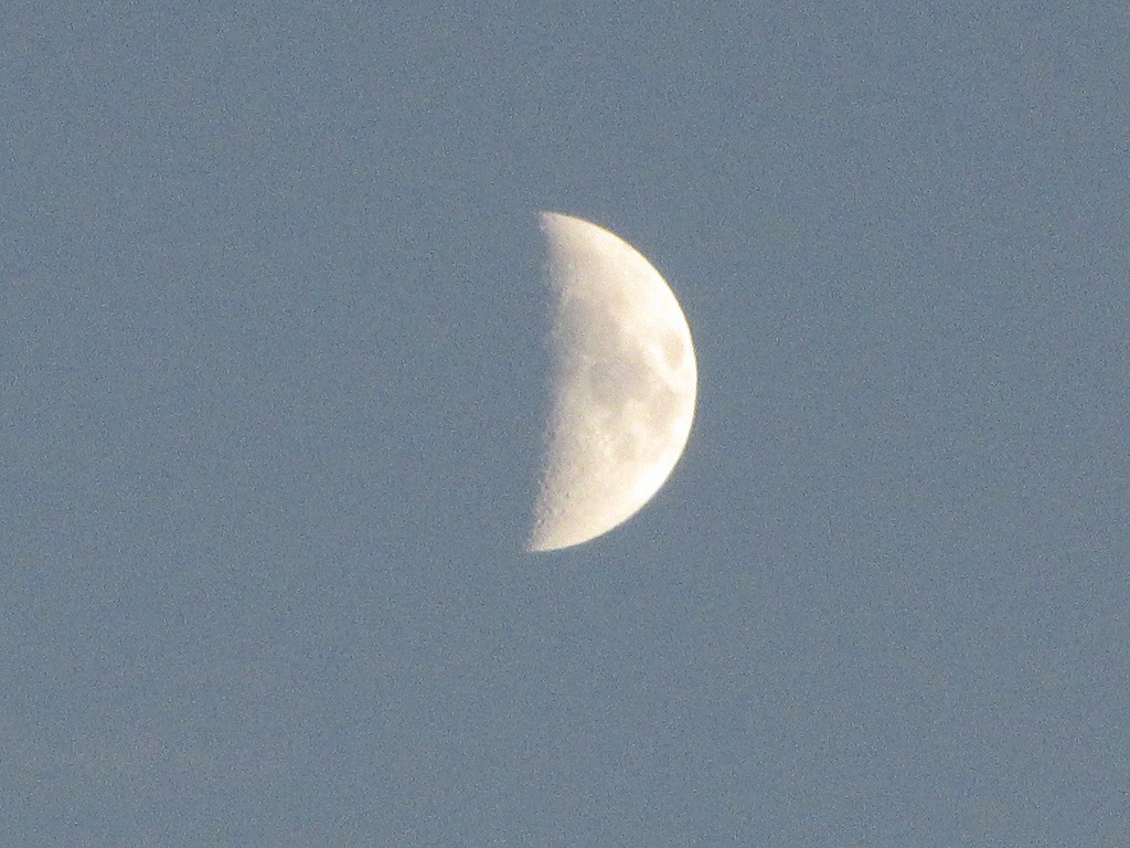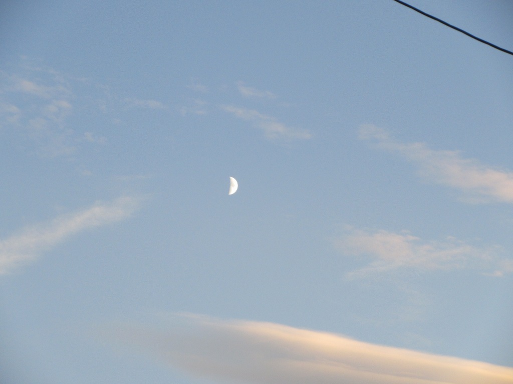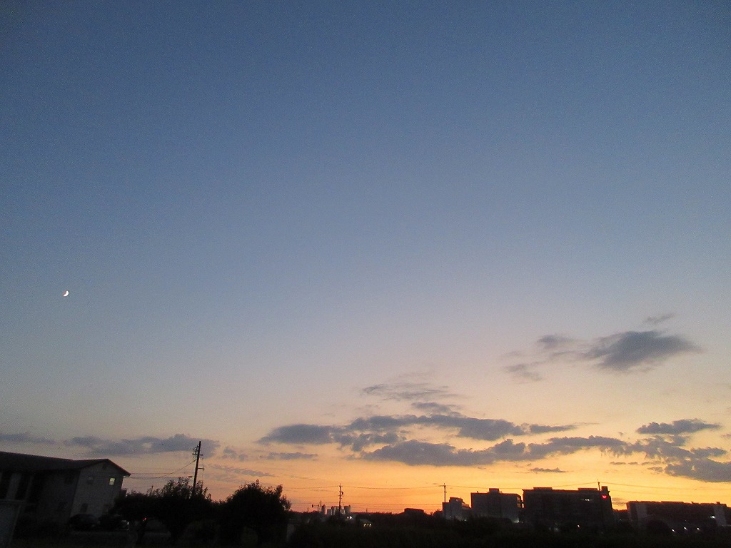 最後はうろこ雲を真っ赤に染めてキレイ・・・月齢は7.3日。明日は上弦の月です。