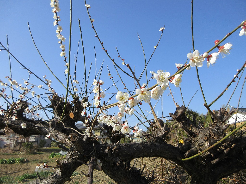 近所の梅がグングン咲き始めています。道場内の温度計は21℃。夕陽が眩しい…