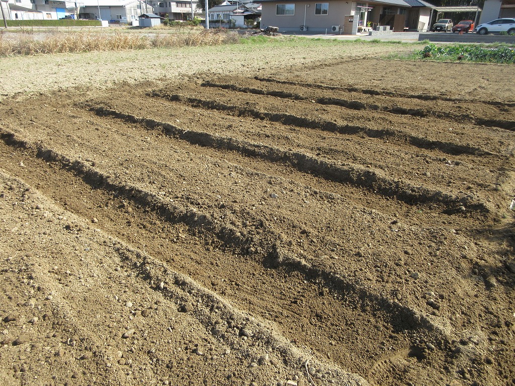 朝からジャガイモの畝作り。ブロッコリーとカリフラワーは片付けました。