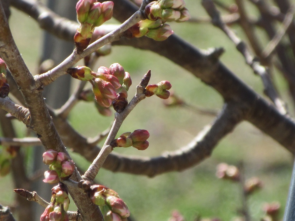 さくらんぼの木の蕾がグッと膨らんできました。来週中には咲きそうです。