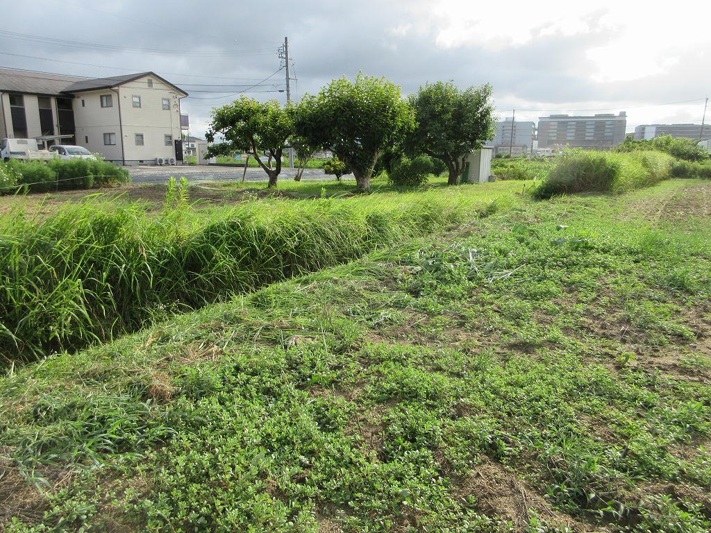 お隣側の側溝の草刈りと、ウチ側も先日刈った跡がもう生え始めてたので再度刈りました。