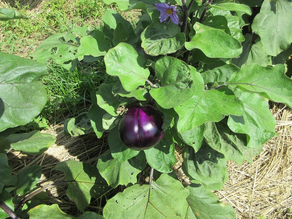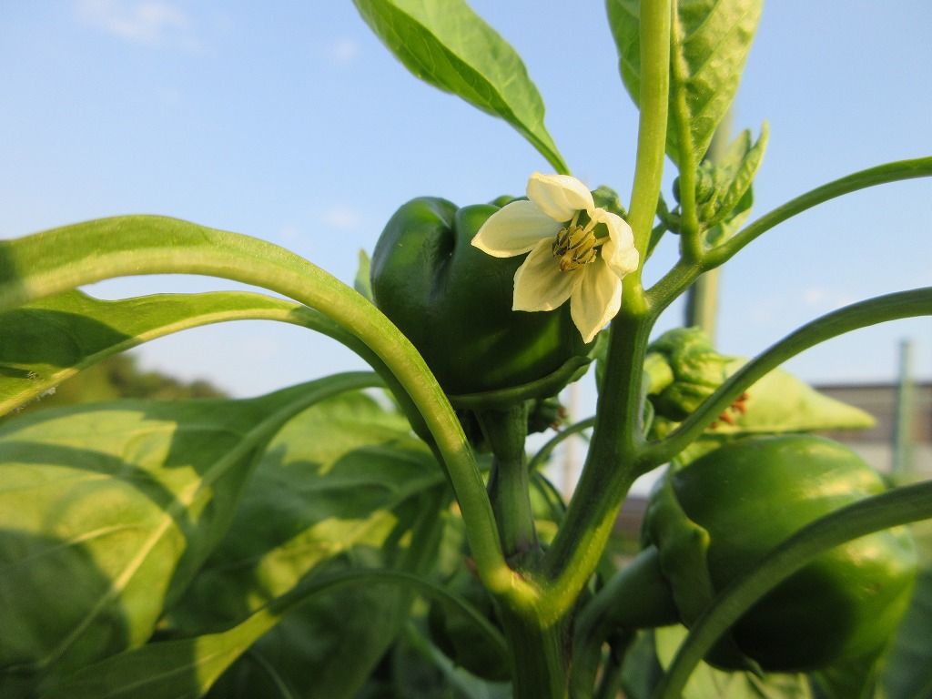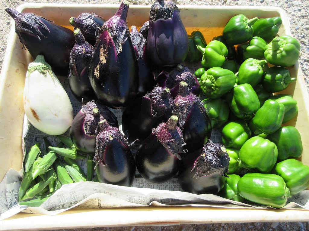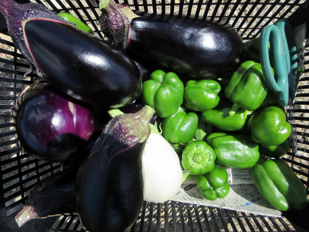 太陽は眩しく空は晴れ渡り、連日の猛暑でナス、ピーマンがグッと大きくなりました。