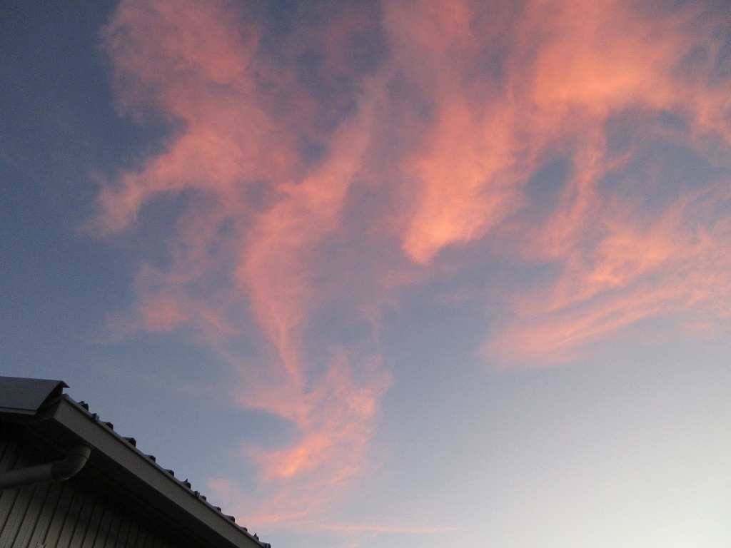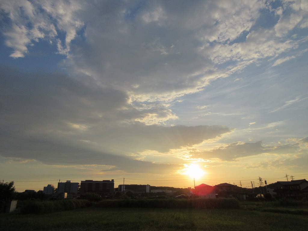 夕陽が眩しく、雲も赤く染まってキレイでした。