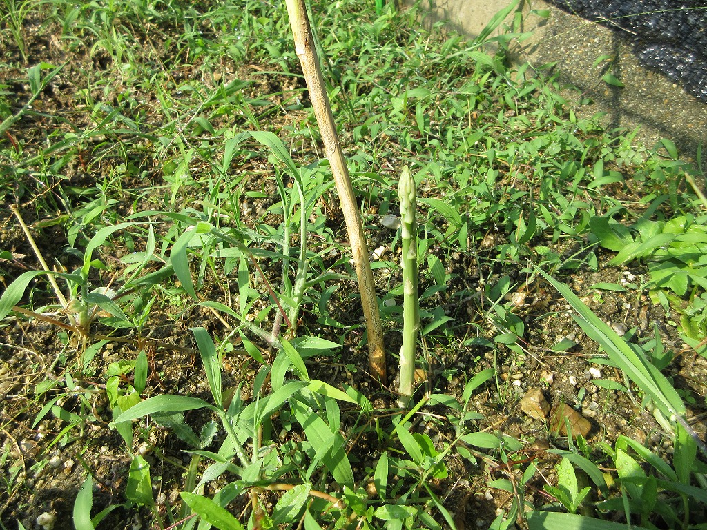 先日のアスパラガスが2日でナント3倍に伸びてました。ズッキーニも1本大きくなりました。