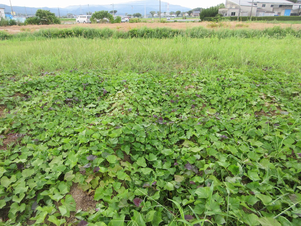 アスパラガスがまた一気に伸びました。サツマイモの葉は密度が上がってきています。