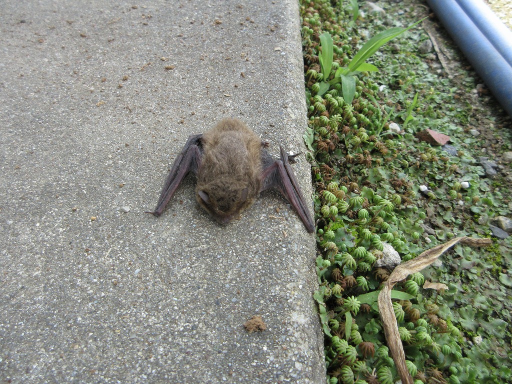 スノコの横に黒い梅干しみたいなものを見つけ「何だこりゃ?」と掃きだしたら、なんと!コウモリ(@o@)