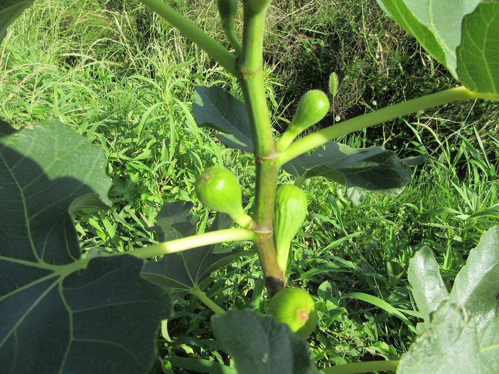 トウモロコシは雄花がどんどん広がってきました。インゲンを収穫。イチジクに実がつきました。