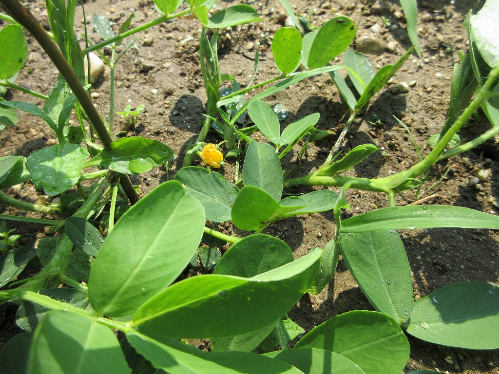 花を見つけたのでパチリ! ナスも育ってきています。落花生にも花が咲きました。