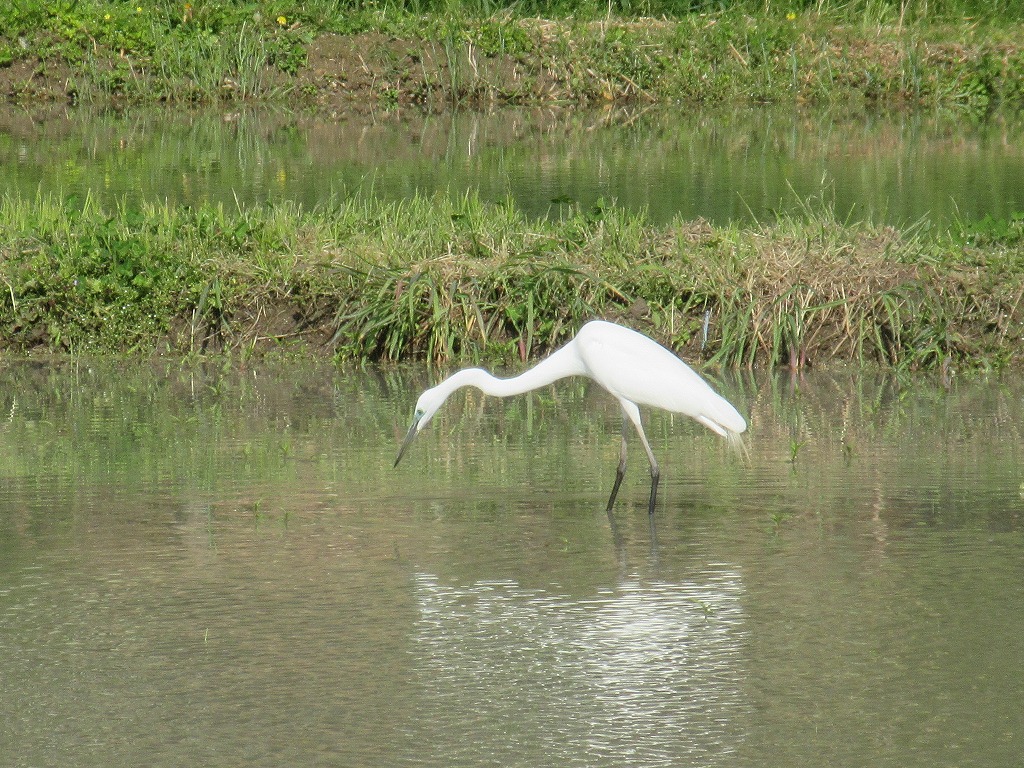 向かいの田んぼにシロサギ、畑の後ろにはケリがきていました。