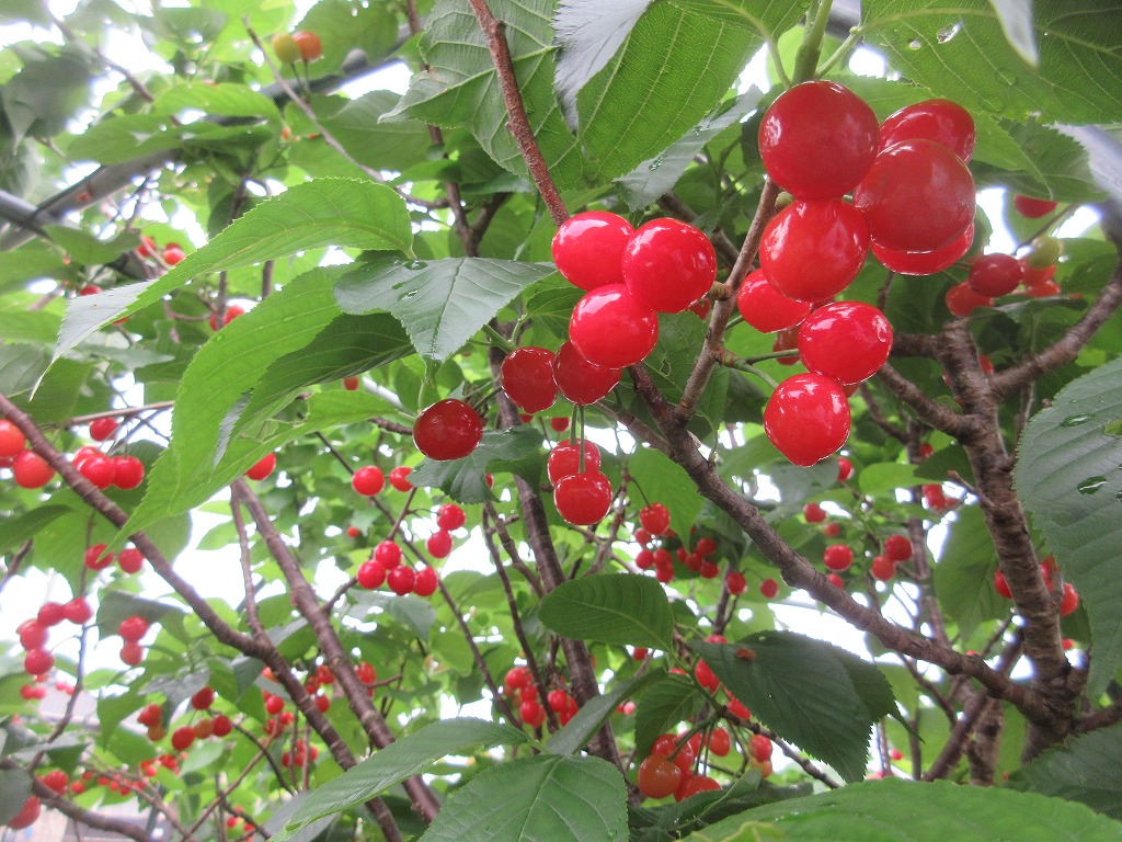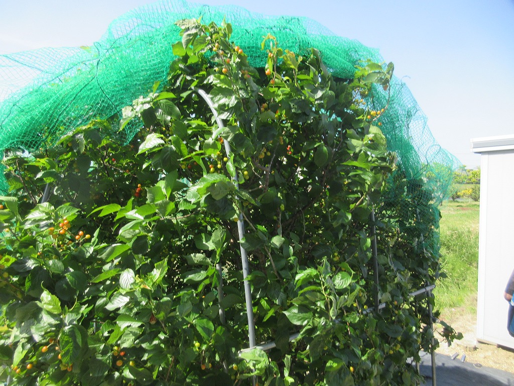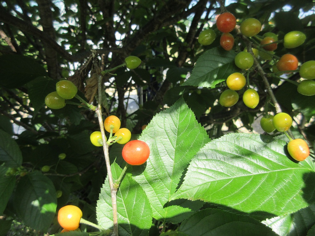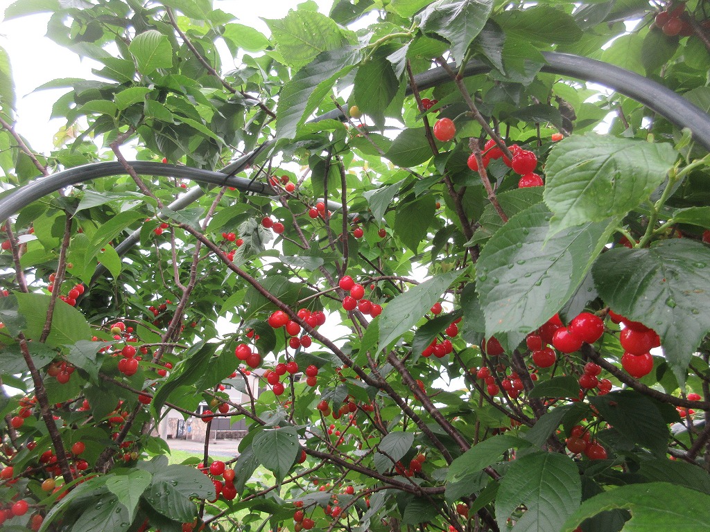 明後日に収穫予定のさくらんぼは熟し具合が今一つ。困ったなぁ・・・