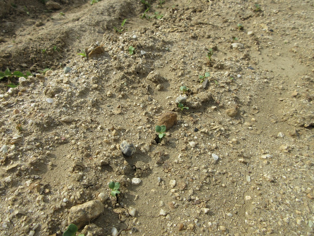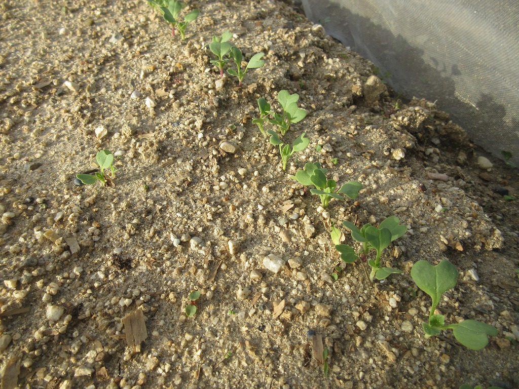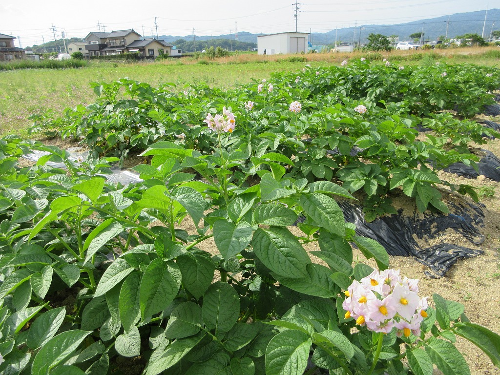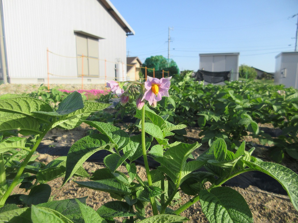 何はともあれひと安心。大根の芽が伸びてきました。ジャガイモの花が咲きました。