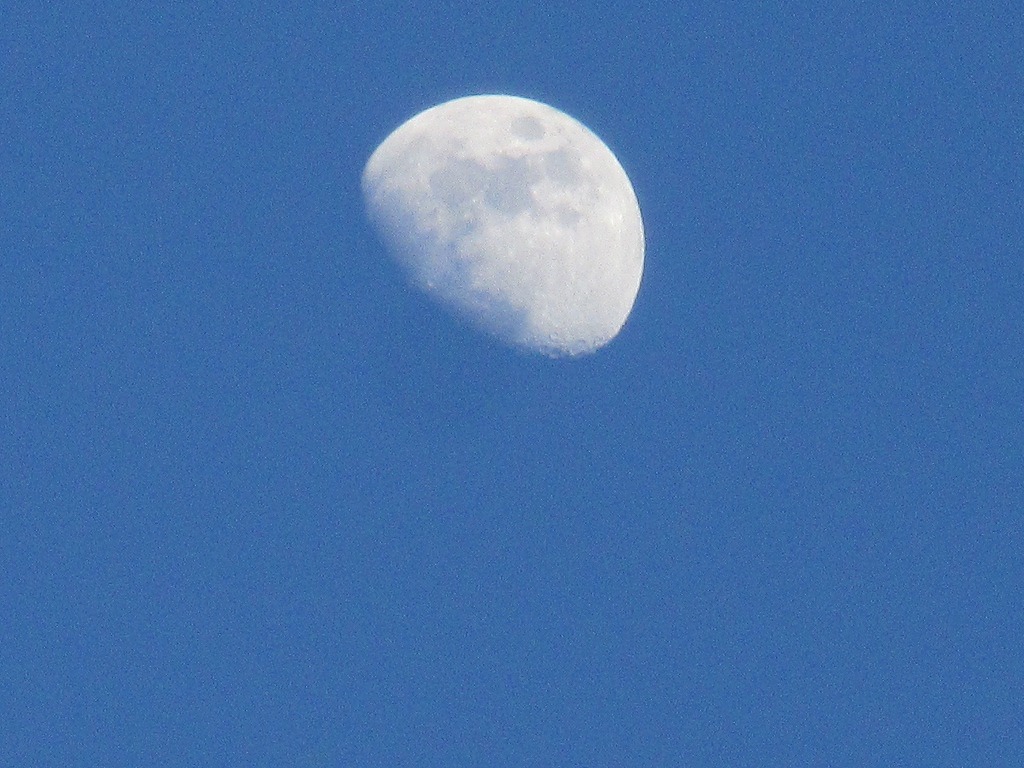 今日の月齢は9.7日。青空の中、くっきり見えていました。