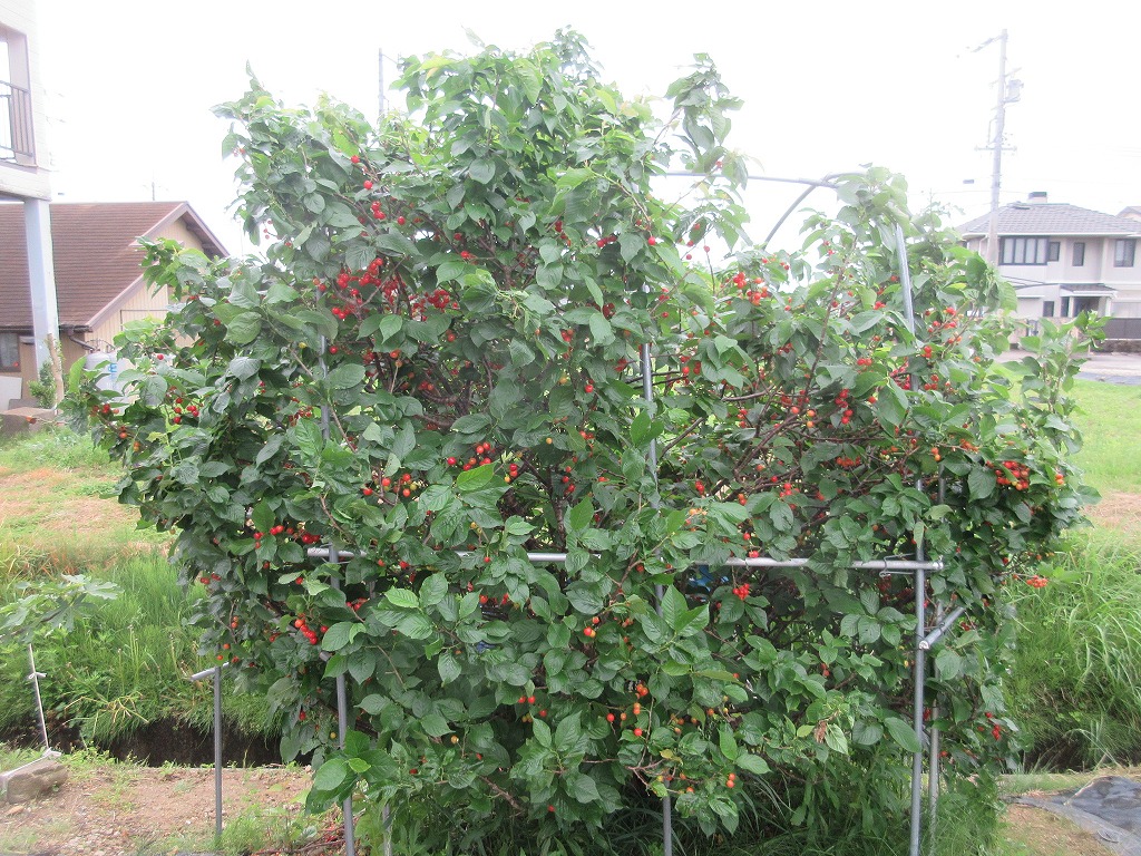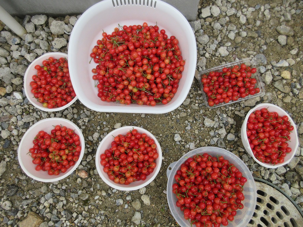 今日も畑に水やり。さくらんぼは、すっかり鳥さんがキレイにしてくれました。