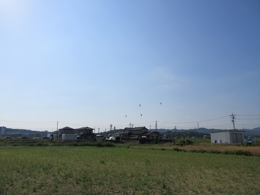 上手にタネだけ残して食べるんですよね。向こうにはケリ。地上に2羽。空に3~4羽。