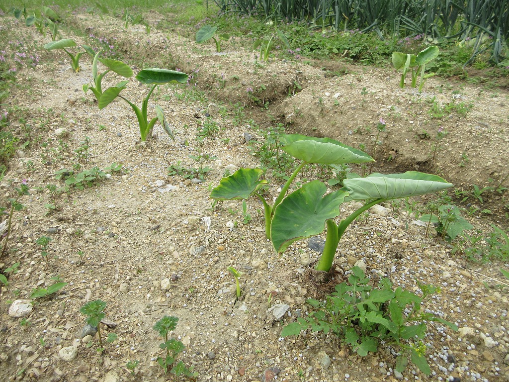 先週水曜日から、里芋、トウモロコシ、大根がググっと成長していました。
