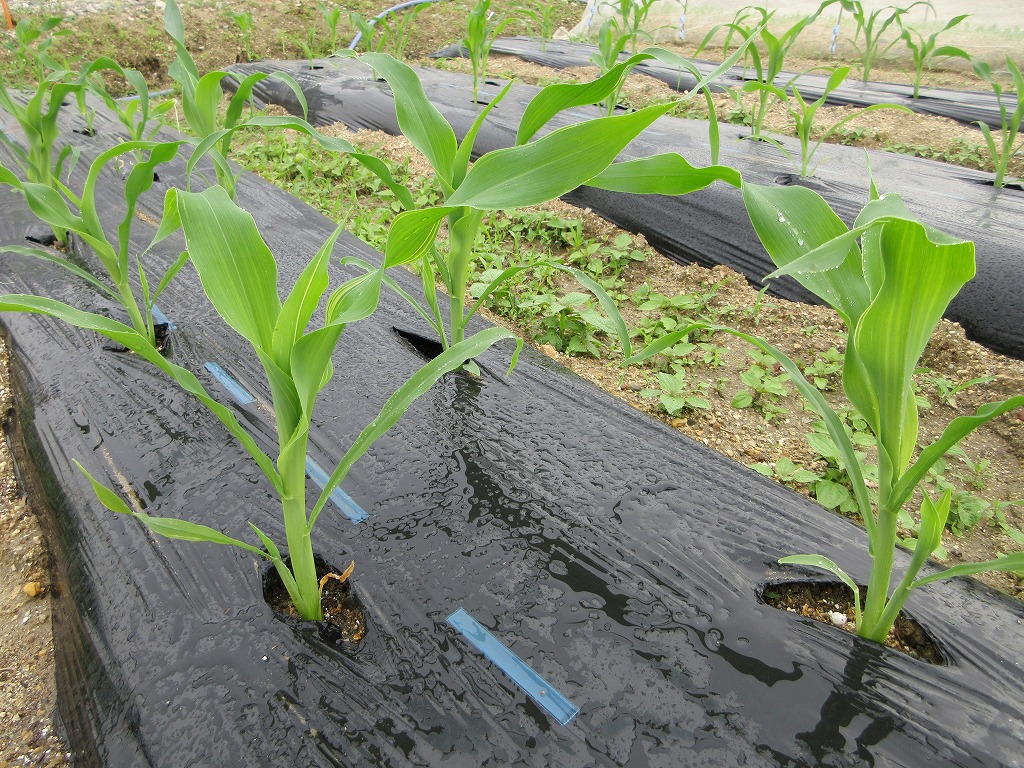 畑では、エンドウ、トウモロコシが根付いてきています。玉ねぎはそろそろ収穫時期です。