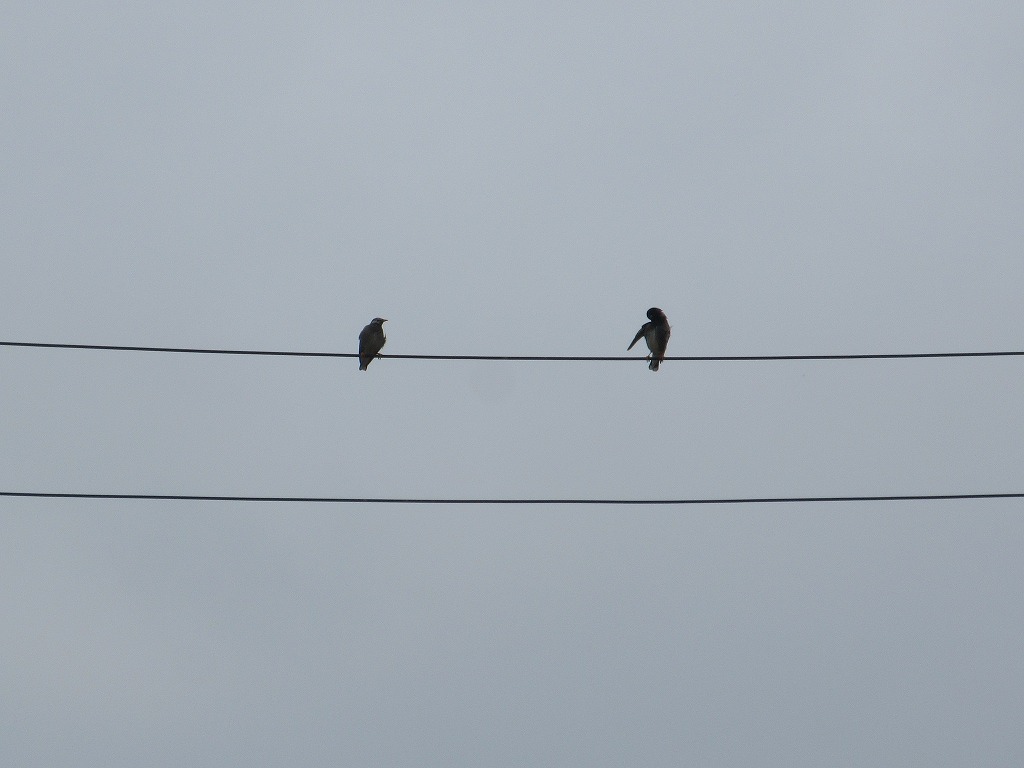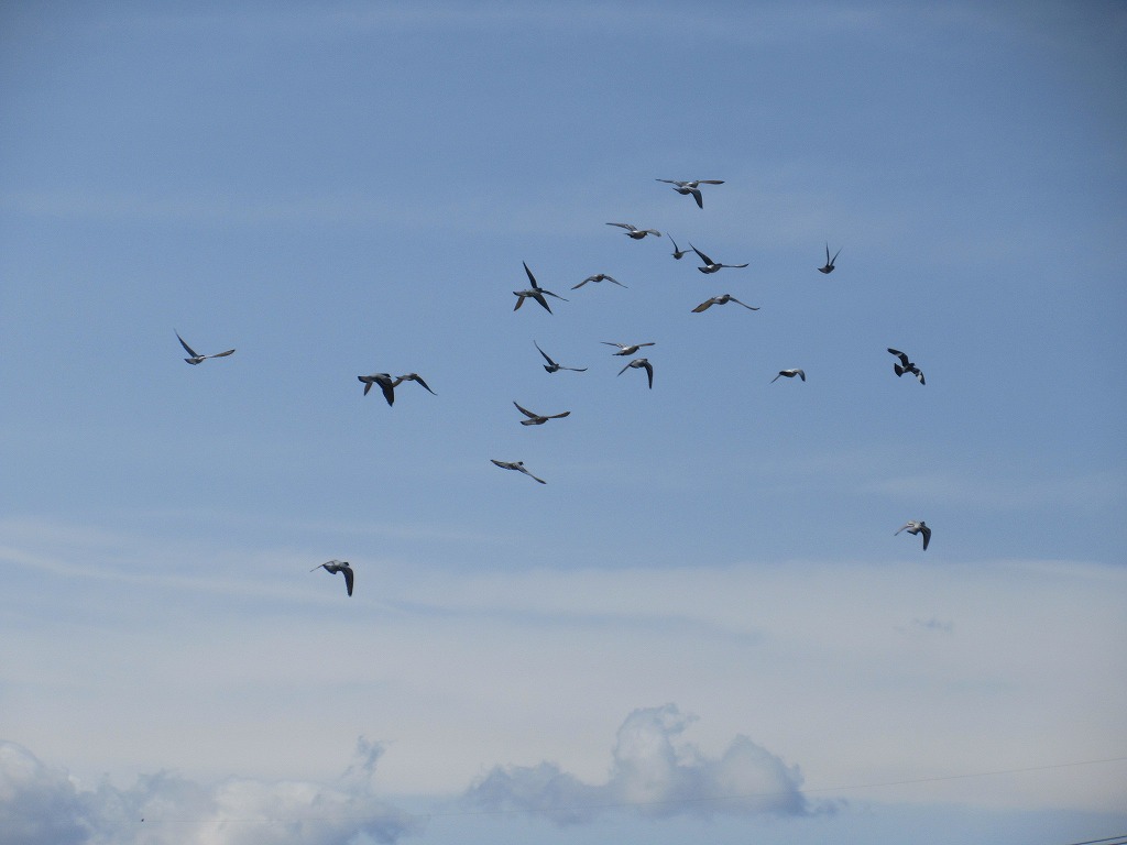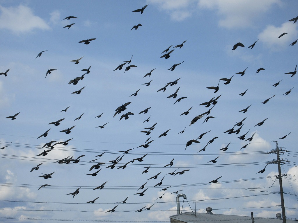 空を見上げたら、カラスとハトが闘ってました(^^;)