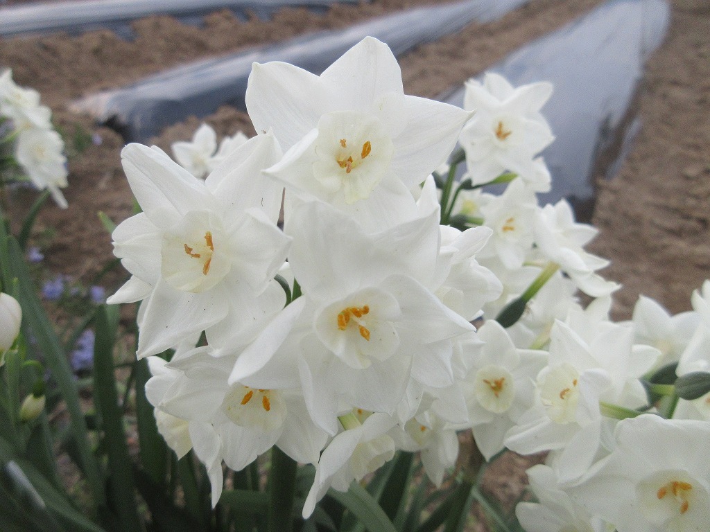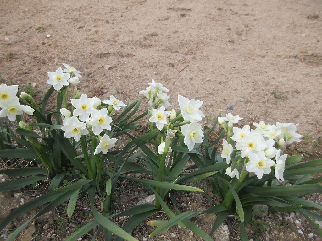 道場端の水仙がキレイです。さくらんぼも実がつき始めています。畑は里芋の畝を作り植えました。