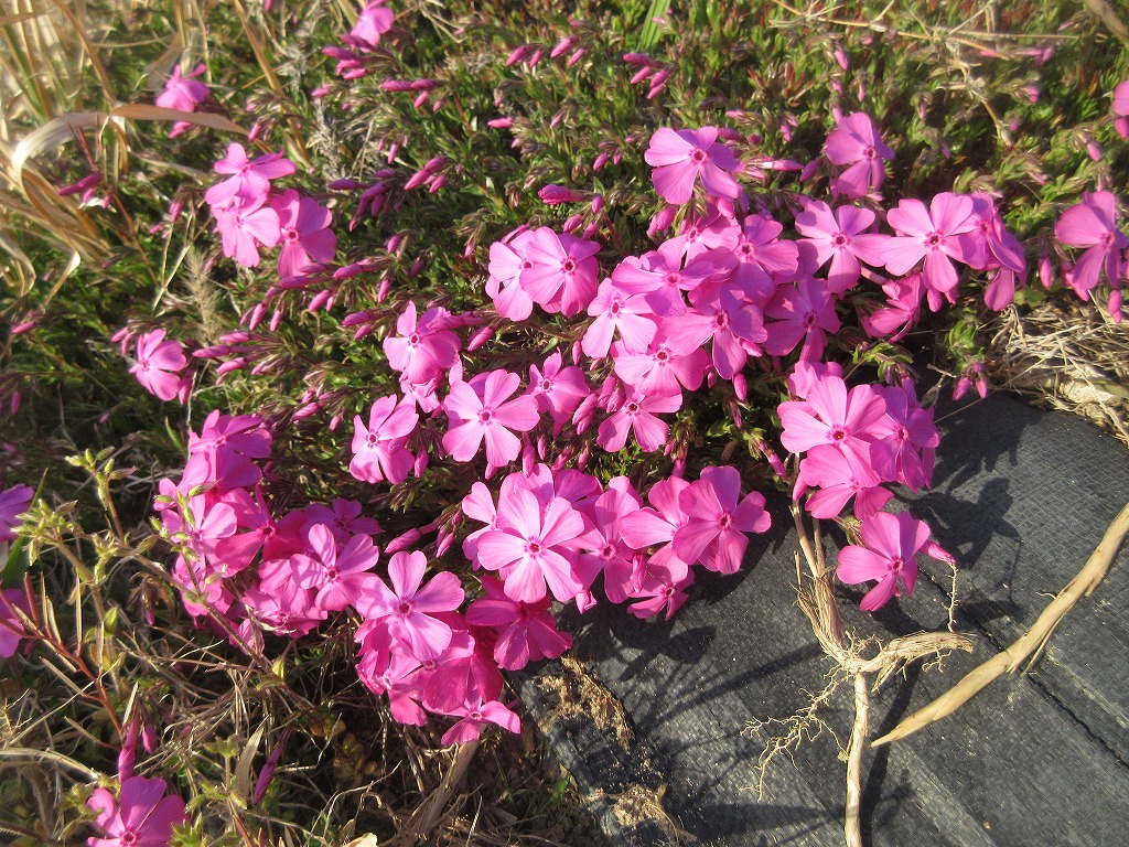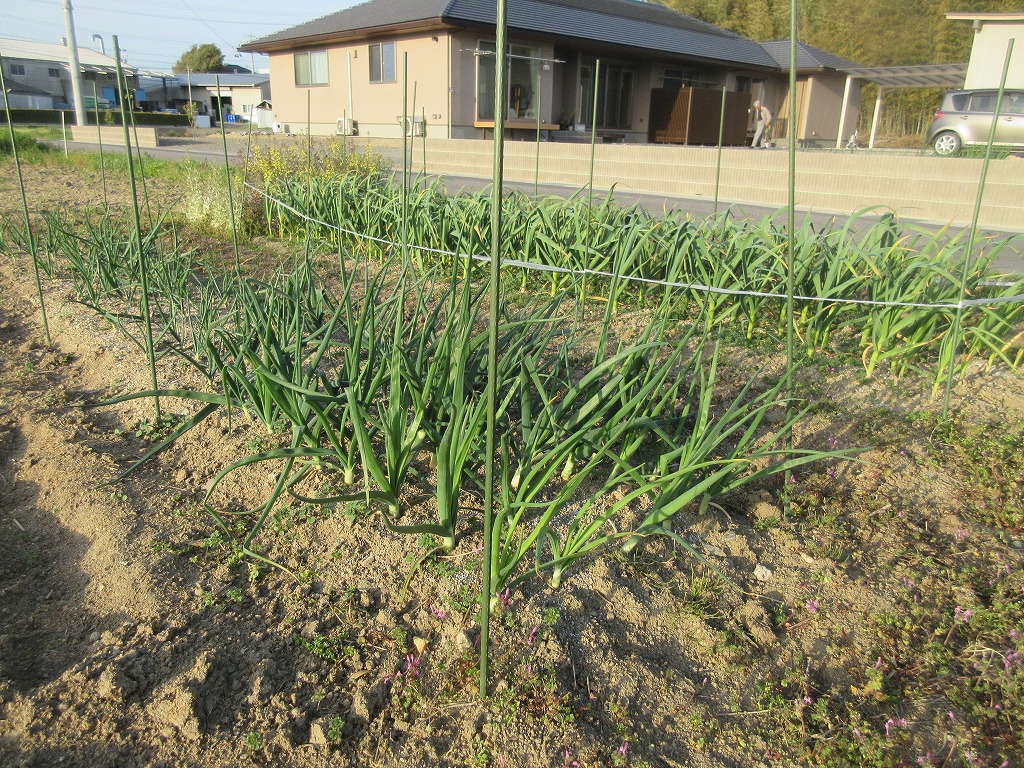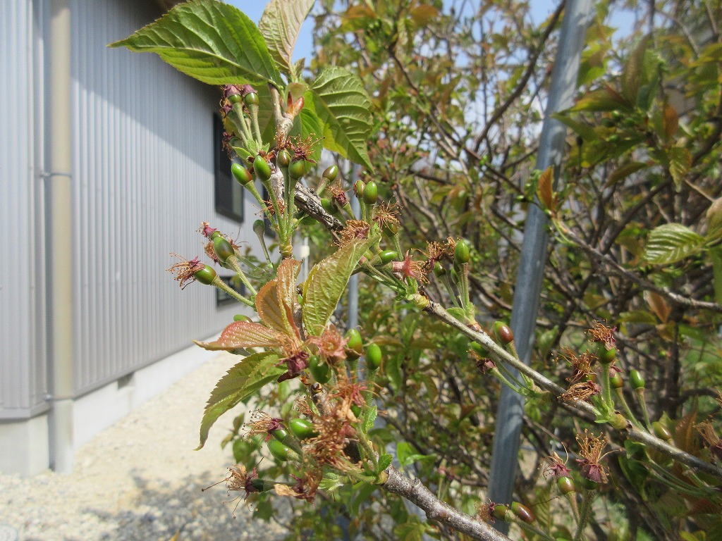 芝桜が開花。さくらんぼの実も順調に成長しています。玉ねぎ、ニンニクも元気。