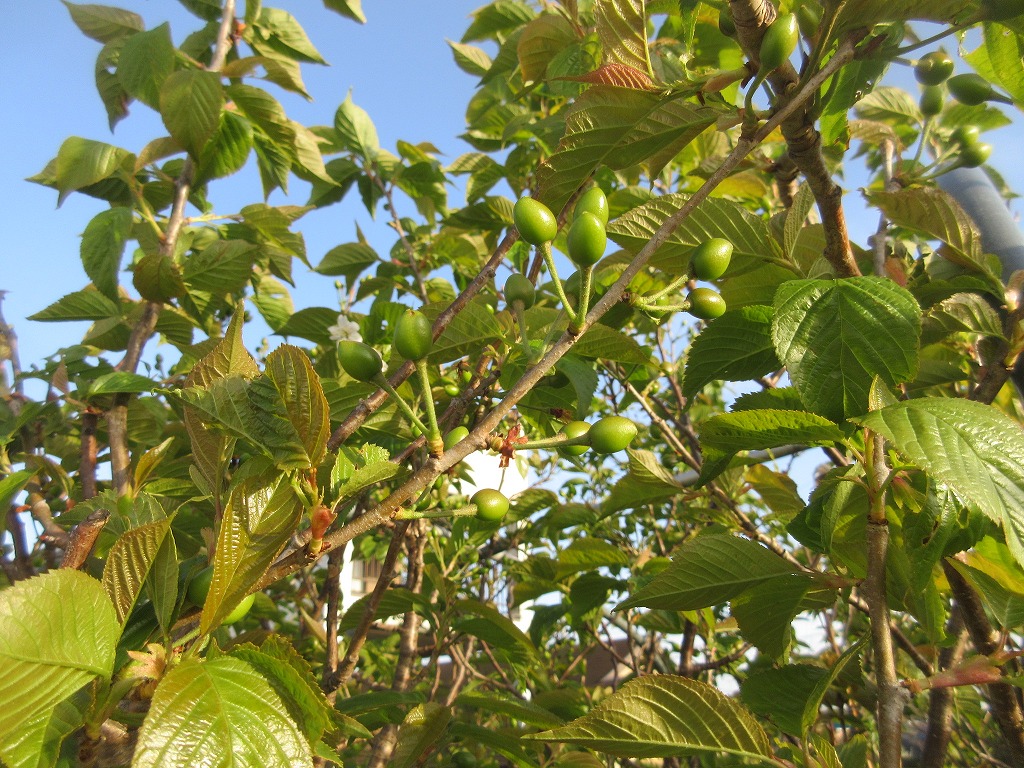 そしてチョットわかりにくいですがカモらしき鳥も2羽。さくらんぼが微かに色づき始めています。