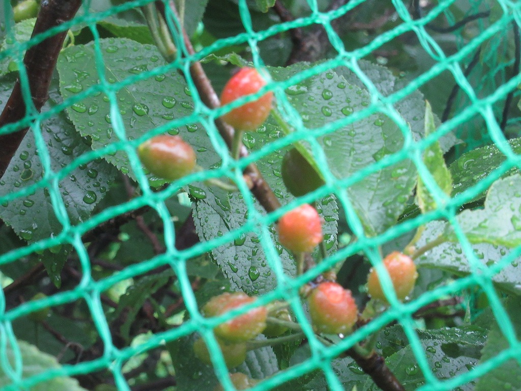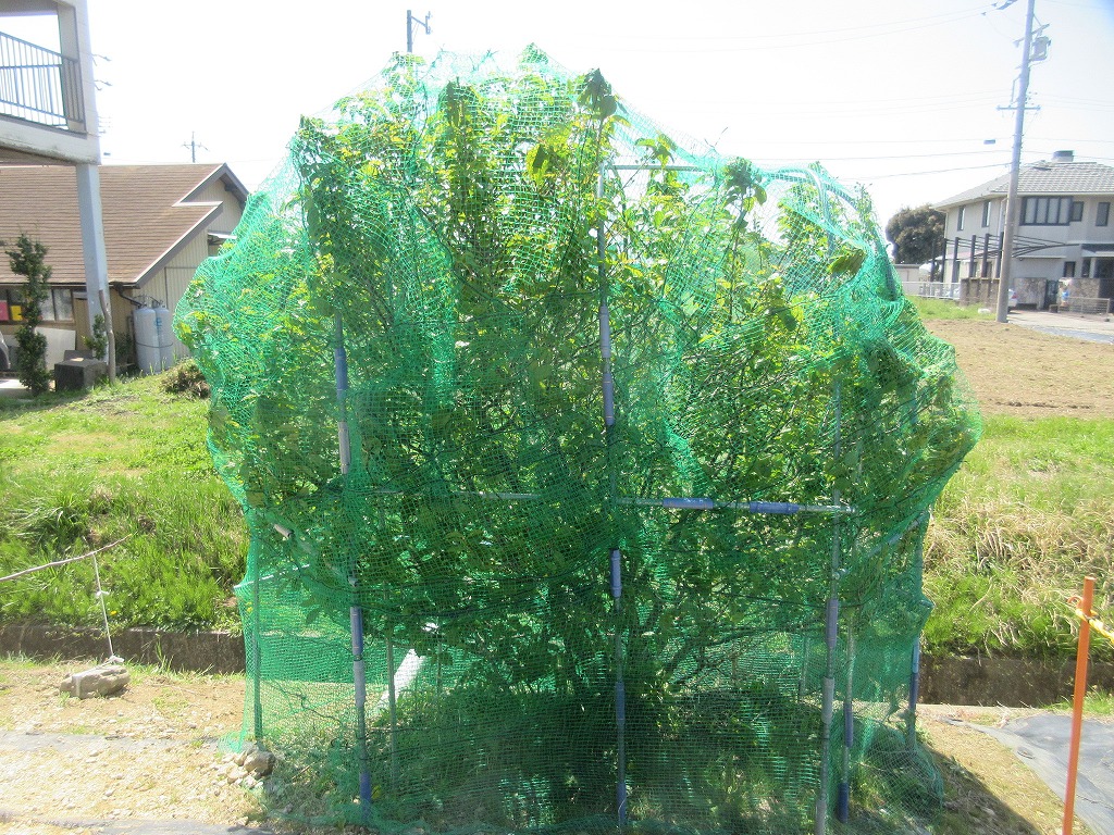 拳士のみなさんにお手伝いいただき、さくらんぼの木に網掛け。