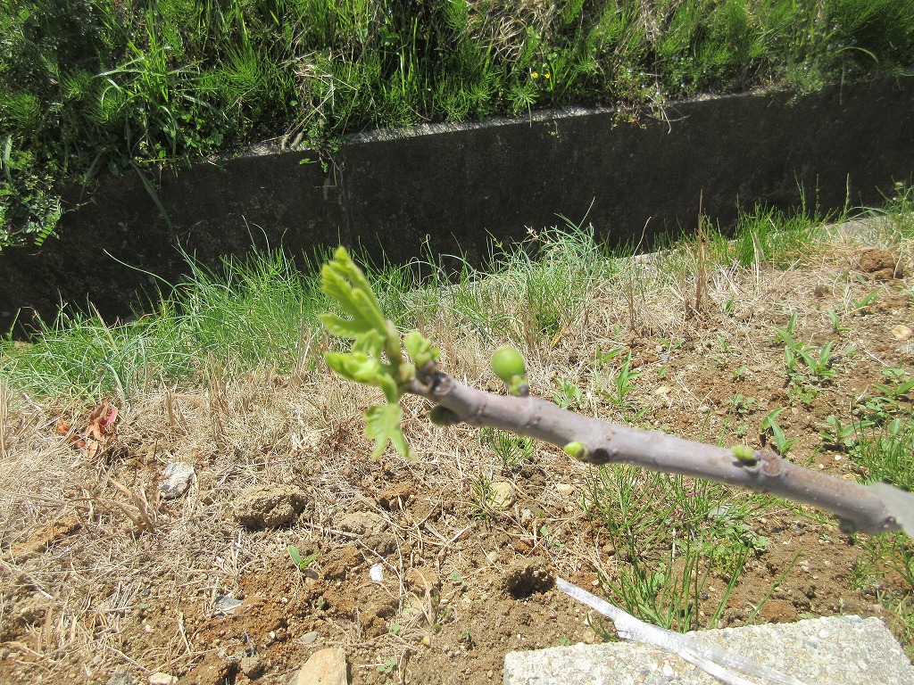 イチジクが早くも芽吹きと結実。ローズマリーと水仙が満開です。