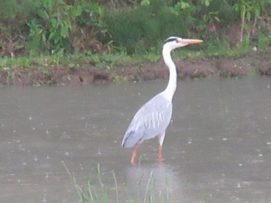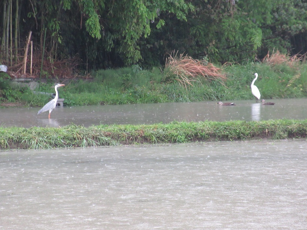 昼から雨が降りはじめ、冷え込みました。道場向かいの田んぼにアオサギとシラサギがきていました。