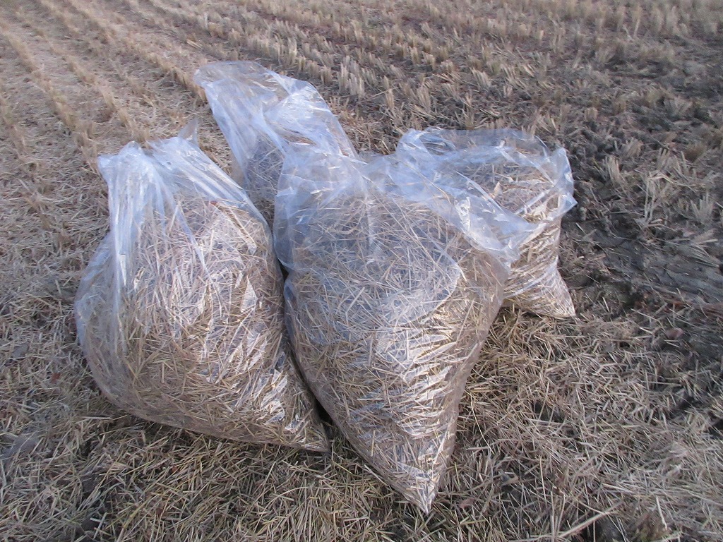 快晴の冬空。 気がつけば、さくらんぼの木もイチジクもすっかり葉が落ちていました。 向かいの田んぼで藁くず拾いをしました。もちろん普通の藁も購入しますが、 細切れの藁も使い勝手がよく、こちらはご好意によりタダでいただいてます。 暗くなる前にと、90L×4袋に詰め込みました(^^) 水仙の芽が寒さに負けずがんばっています。 (詳細はギャラリーで) 修練は今日も10名弱の参座。楽しくやれました。 帰路、外気温計は5℃でした。 | |