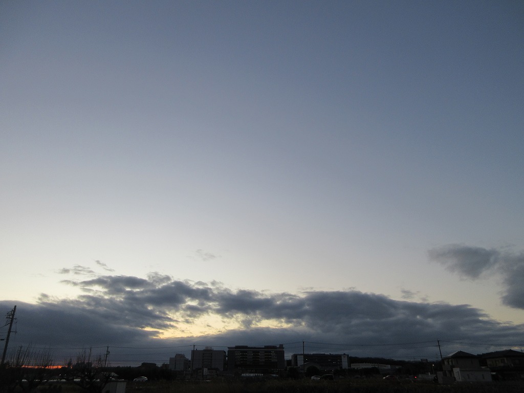 朝方に雪がちらついて、終日寒い一日でした。 大した量は降りませんでしたが、それでもクルマの上に5~6cm積もりました。 気温は上がらず夕方まで残り雪もみられました。そしてきれいな夕焼けも(^^) (詳細はギャラリーで) 修練はいつも通り楽しくできました…が、寒さでイマイチ室温が上がらず{{{{(+_+)}}}} 帰路、外気温計は0℃でした。 | |