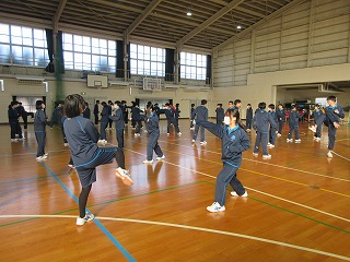 午前中、市内のT中学校で、保健体育の授業の一環として、少林寺拳法授業を実施しました。 愛知県内には既に実施している市もあり、豊田市も体験レベルの実績はありましたが、学校授業 としての採用は初になります。愛知県少林寺拳法連盟の活動としてY先生が長年取り組まれてき た努力が実りました。豊田市少林寺拳法協会も全面協力で3名が指導補助として参加しました。 全部で5回予定。少林寺拳法の魅力を伝えられるようがんばります! | |