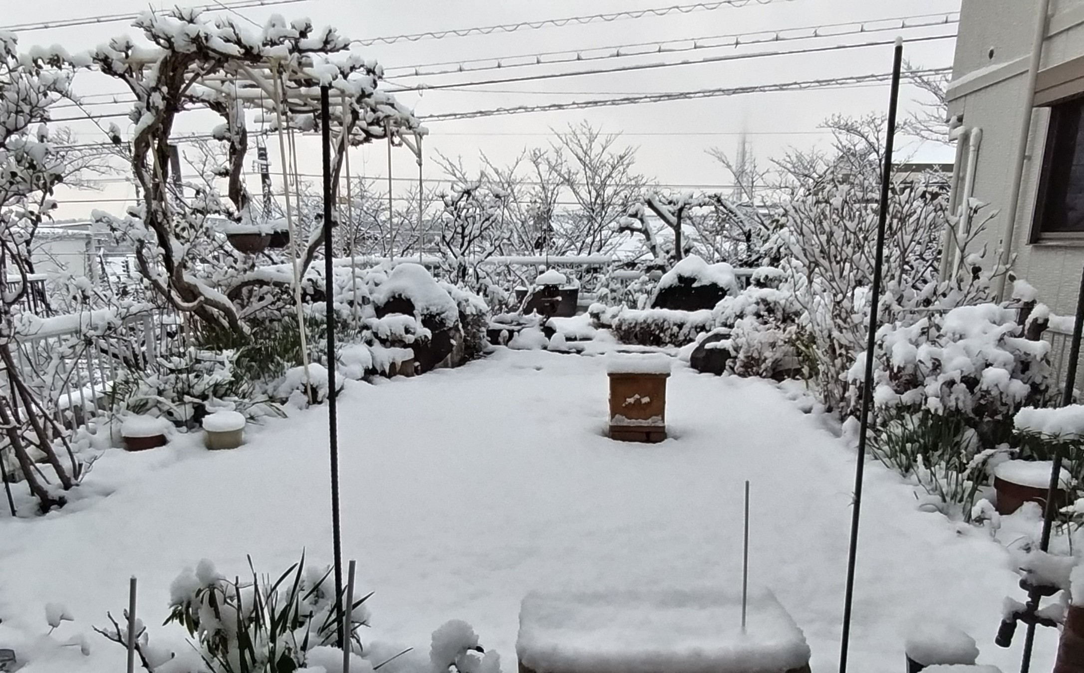 今朝居間のシャッターを上げると思ったより 積雪はなく2センチほどでした。 道路も積雪もなく凍ってもいません。 予報ではこの先降雪もないようですが 「どうか降ってくれるな!」と願うばかりです。 しかし、寒いです❗️ | |